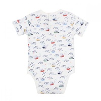 This wavy boat print short sleeve bodysuit features a press stud opening.