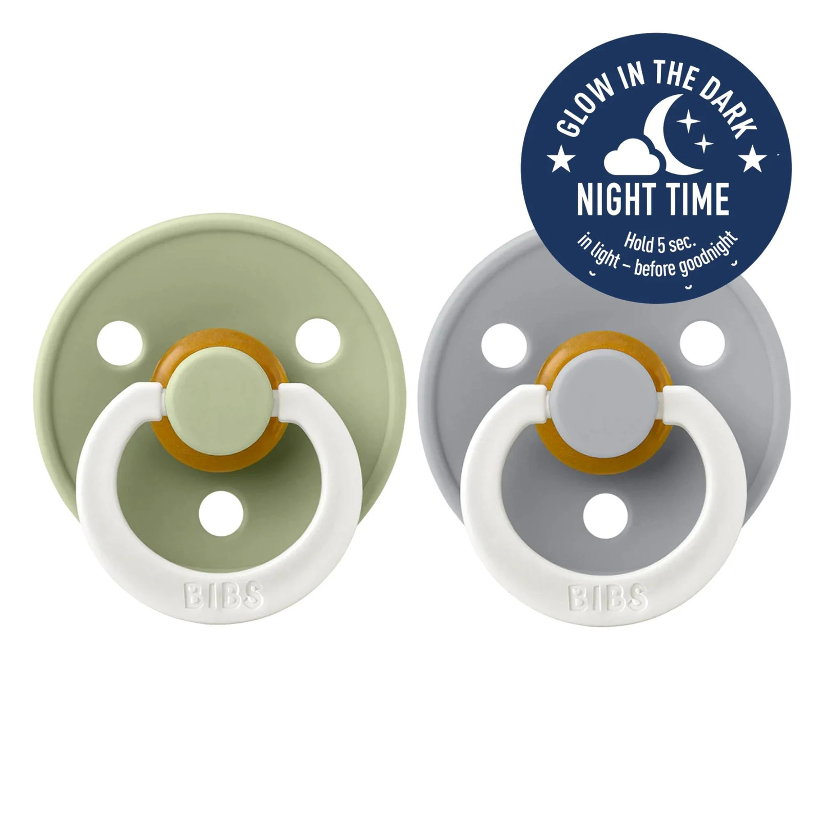 • LIGHT UP IN THE DARK! BIBS Colour Night has a luminescent ring, which shines in the dark. For best results, hold the pacifier towards a lamp for approx. 10 seconds