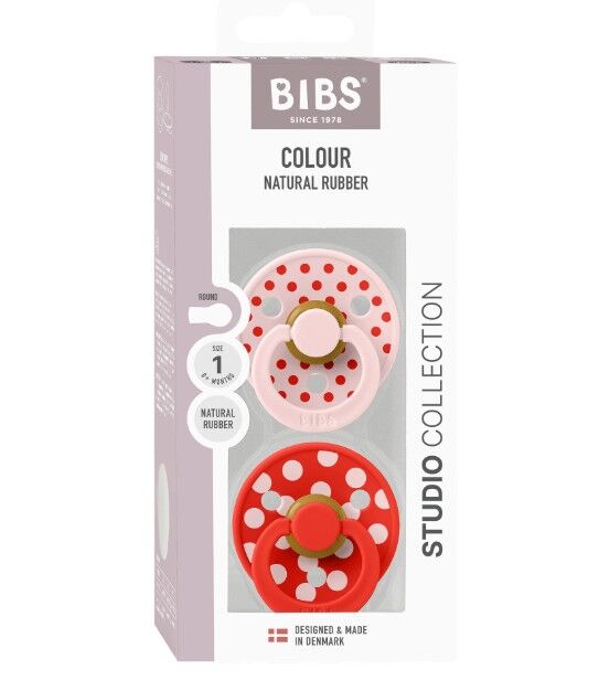 BIBS Studio Polka - Size 1  Blossom/Candy Apple